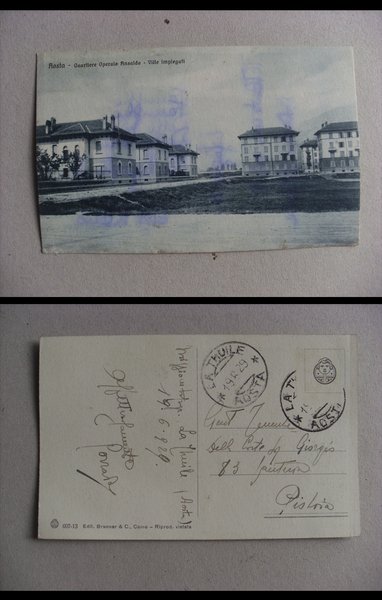 Cartolina / postcard AOSTA - Quartiere Operaio Ansaldo - Ville impiegati 1929