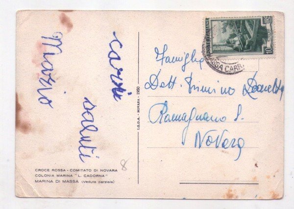 Cartolina/postcard Croce Rossa - Comitato di Novara. Colonia marina "L. Cadorna" Marina di Massa (Veduta parziale)