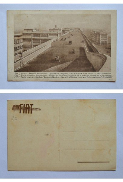 Cartolina / postcard FIAT - Sezione Automobili "Officine del Lingotto": lato Est della Pista e Palazzo della Direzione.
