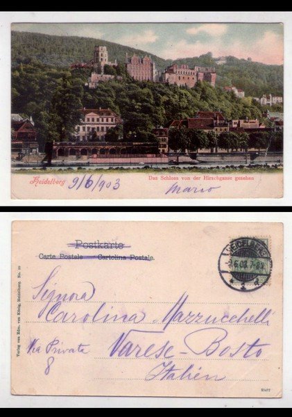 Cartolina/postcard Heidelberg - Das Schloss von der Hirschgasse gesehen. 1903