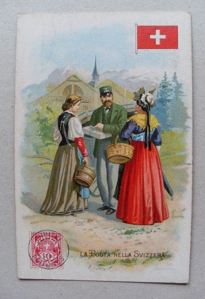Cartolina/postcard "La Posta nella SVIZZERA" Lysoform - Achille Brioschi & C. MILANO. 1908