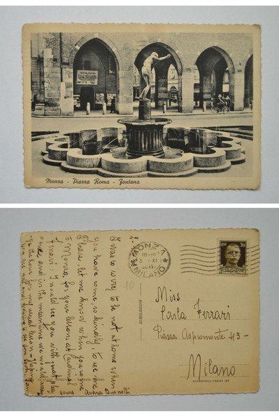 Cartolina / postcard MONZA - Piazza Roma, fontana. 1930 ca.