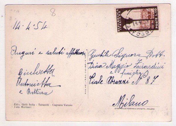 Cartolina/postcard Saluti da Cagnano Varano (Foggia) 1954