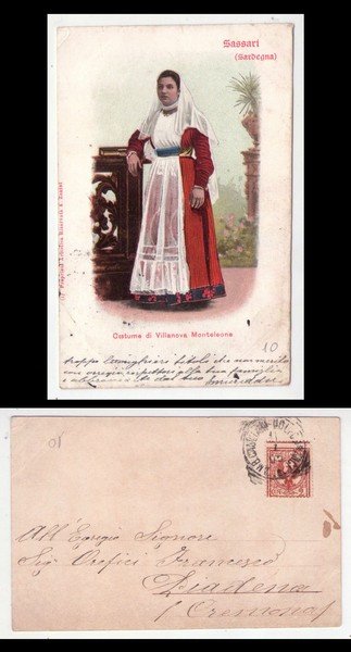 Cartolina/postcard Sassari (Sardegna) Costume di Villanova Monteleone. 1905