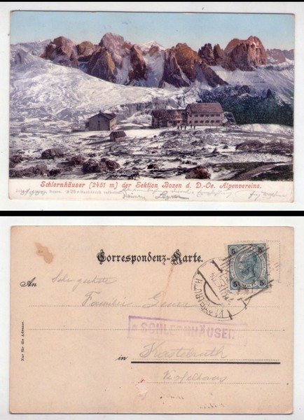 Cartolina/postcard Schlernhäuser der Sektion Bozen d. D.-Oe. Alpenvereins.1904