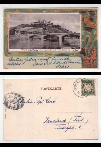 Cartolina/postcard Würzburg. Ludwigsbrucke mit Veste Marienberg. 1910