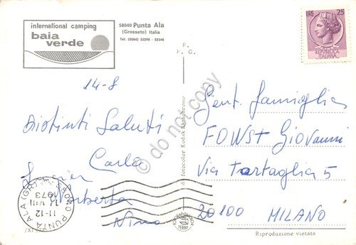 Cartolina Punta Ala Camping Baia Verde 1973 vedute spiaggia campeggio | Cartoline |