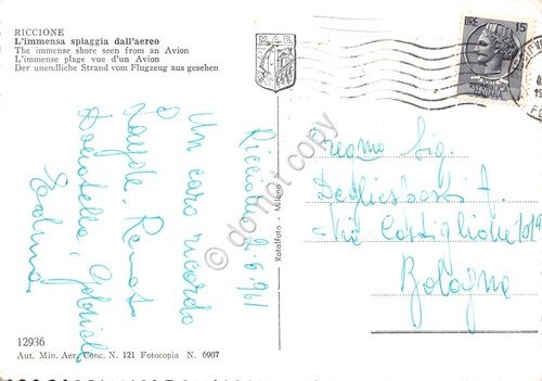 Cartolina Riccione panorama aereo della spiaggia 1961 | Cartoline |