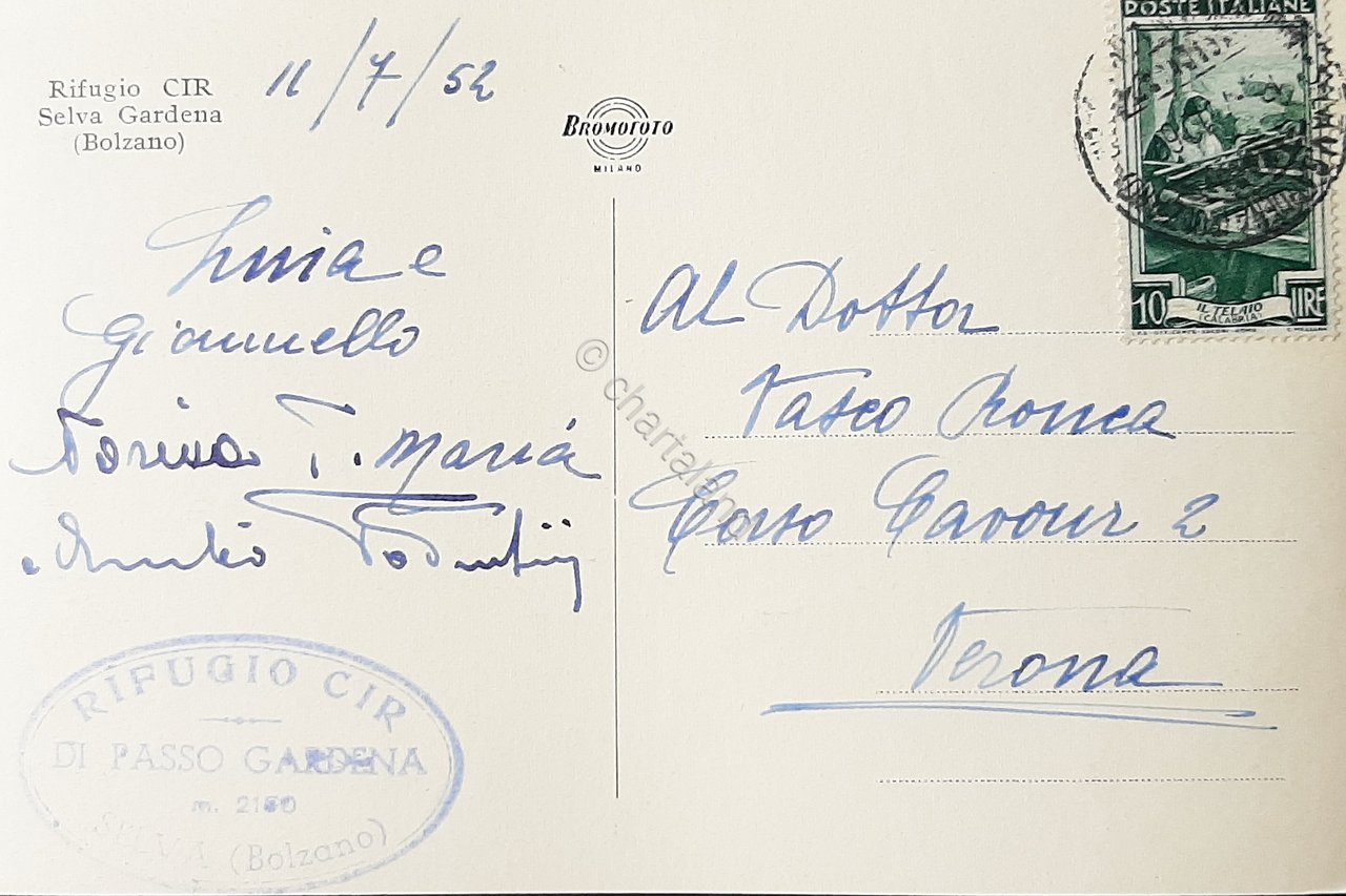 Cartolina Rifugio CIR Selva Gardena - Bolzano - 1952