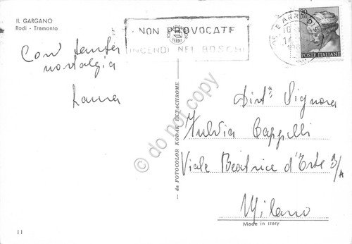 Cartolina Rodi Garganico al tramonto Timbro PT incendi 1968 | Cartoline |