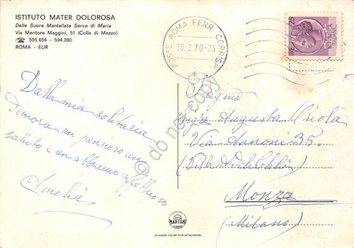 Cartolina Roma Eur Istituto Mater Dolorosa 1970 segni