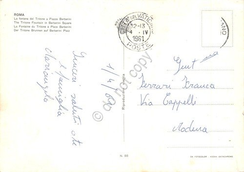 Cartolina Roma Fontana Tritone a Piazza Barberini 1961 Bernini Motta Gancia | Cartoline |