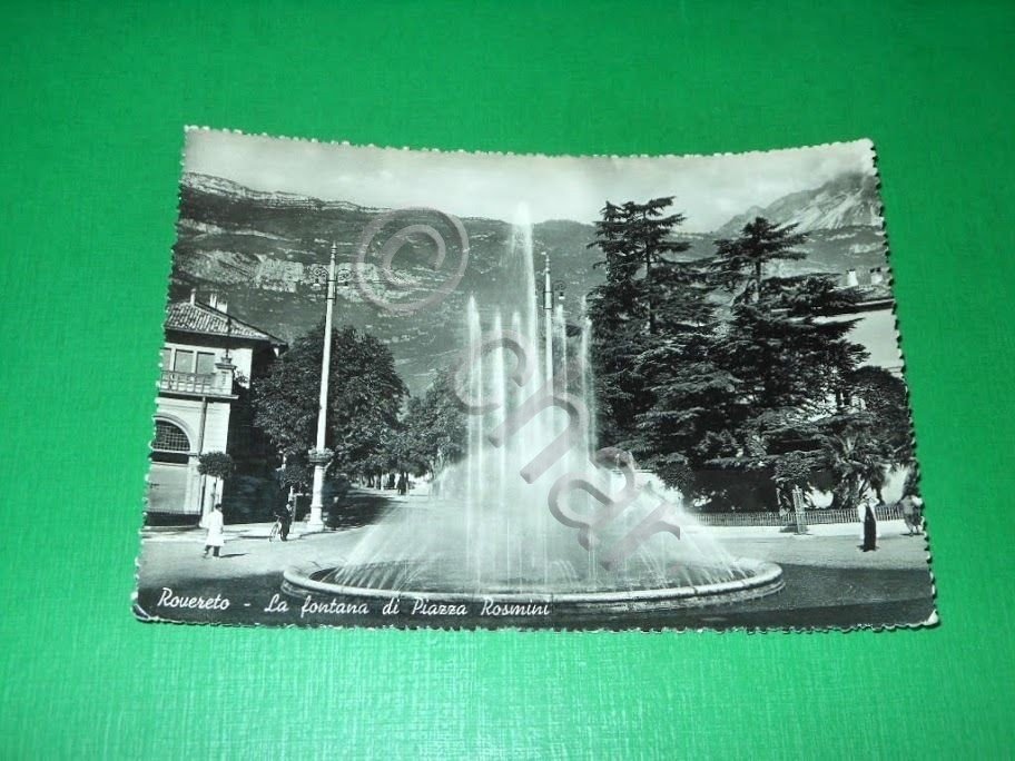 Cartolina Rovereto - La fontana di Piazza Rosmini 1951.