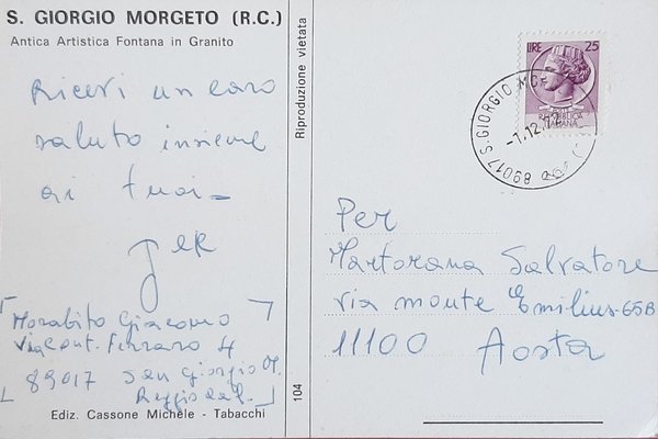 Cartolina S. Giorgio Morgeto - Antica Fontana in Granito - 1972