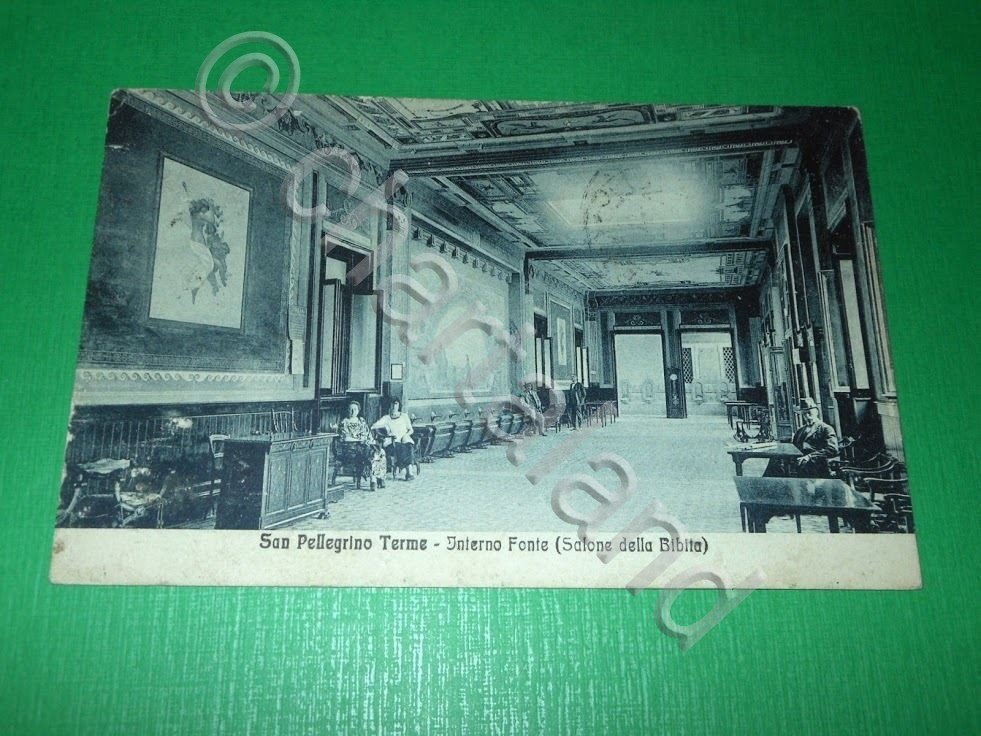 Cartolina S. Pellegrino Terme - Interno Fonte ( Salone della Bibia ) 1923 ca