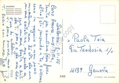 Cartolina Salerno panorama notturno 1976