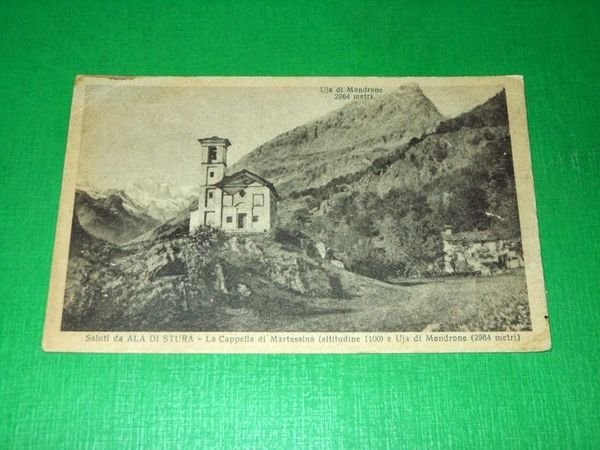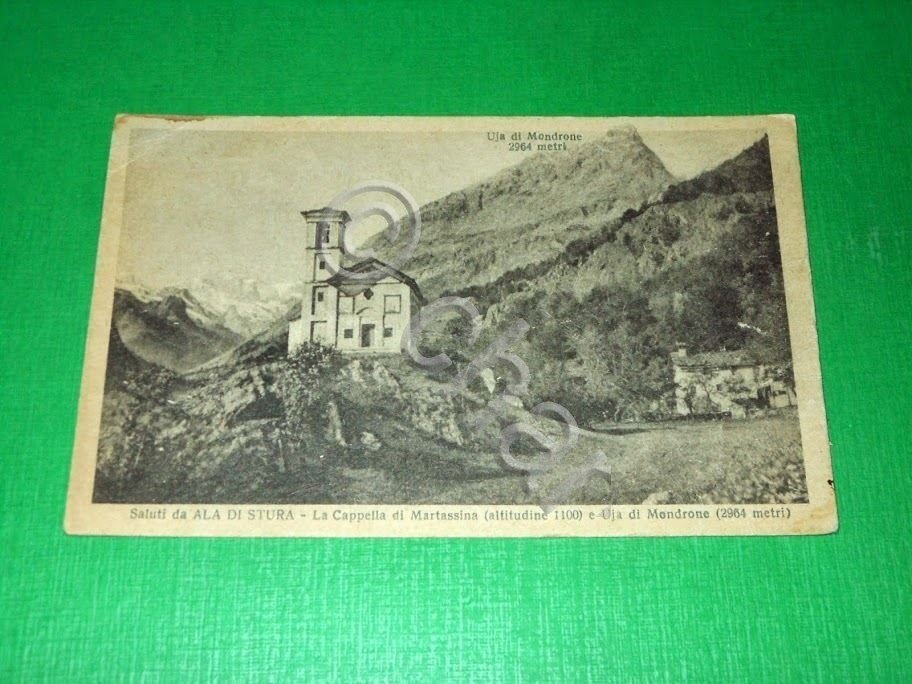 " *** Cartolina Saluti da Ala di Stura - La Cappella di Martassina e Uja di Mondrone. La cartolina non è viaggiata. Databile 1943 ca. Formato piccolo. Per appassionati, studiosi e collezionisti