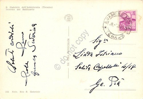 Cartolina San Gabriele dell'Addolorata Teramo santuario interno 1952 | Cartoline |
