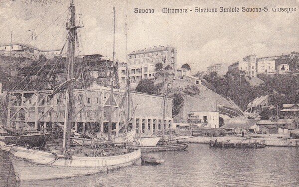 Cartolina SAVONA - Miramare - Stazione Funivie Savona-S. Giuseppe. 1920
