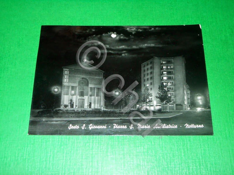 " *** Cartolina Sesto San Giovanni - Piazza S. Maria Ausiliatrice (notturno). La cartolina è viaggiata. Datata 1961. Formato grande. Per appassionati, studiosi e collezionisti