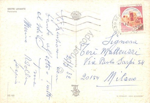 Cartolina Sestri Levante Panorama spiaggia dall'alto 1982