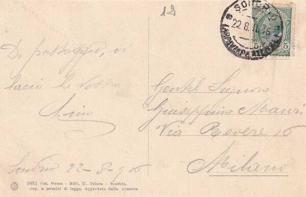 Cartolina Sondrio - piazza Vittorio Emanuele. 1916