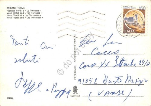 Cartolina Tabiano Terme Albergo Verdi e Le Terrazze grinze angolo