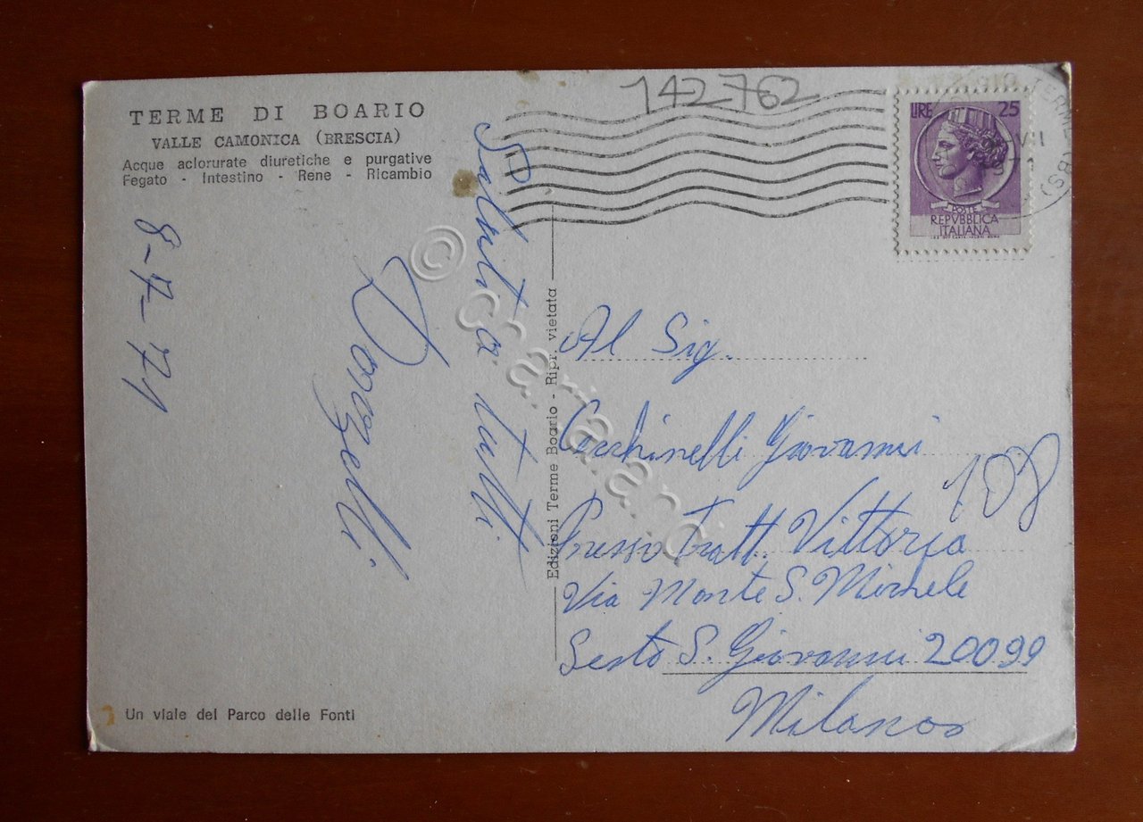Cartolina Terme di Boario (Lombardia) - Un aspetto del Parco delle Fonti - 1971
