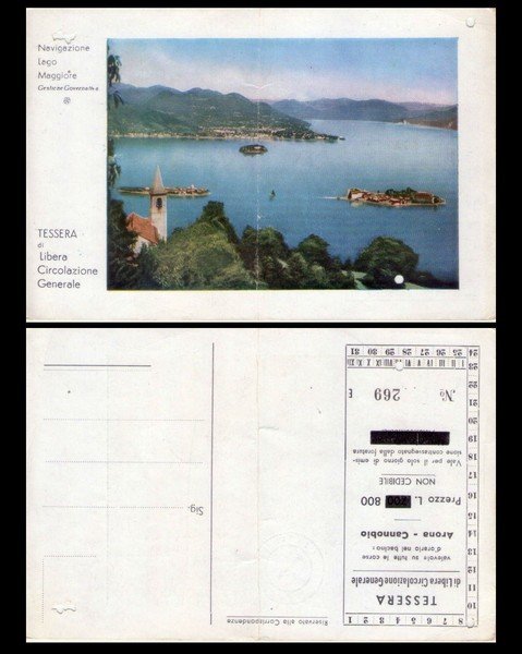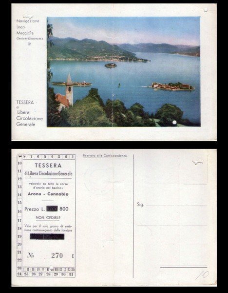 Cartolina/tessera di Libera Circolazione Generale - Navigazione Lago Maggiore. ARONA - CANNOBIO