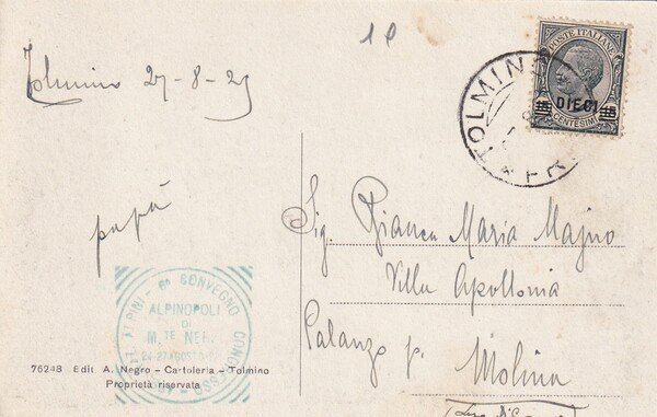 Cartolina Tolmino - Visto dal Monte Bucenica. Anni '20