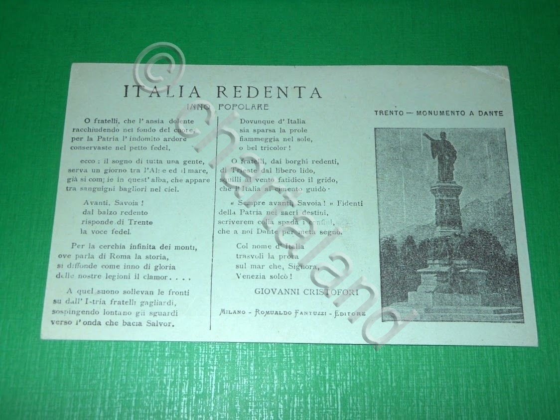 " *** Cartolina Trento - Monumento a Dante - Versi dell' Inno Italia Redenta. La cartolina non è viaggiata. Databile 1930 ca. Formato piccolo. Per appassionati, studiosi e collezionisti