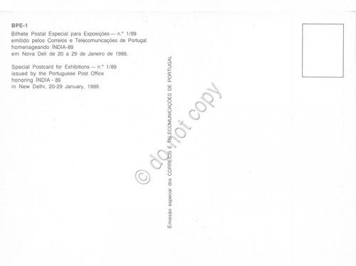 Cartolina Tribute of the Portuguese Post Office Nova Deli 1989