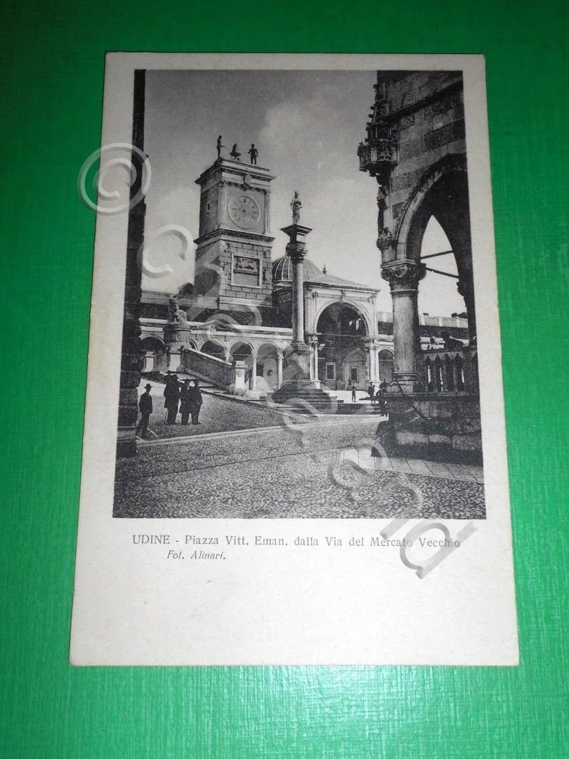 " *** Cartolina Udine - Piazza Vitt. Emanuele dalla Via del Mercato Vecchio. La cartolina non è viaggiata. Databile 1935 ca. Formato piccolo. Rif. numero 27405 Per appassionati, studiosi e collezionisti