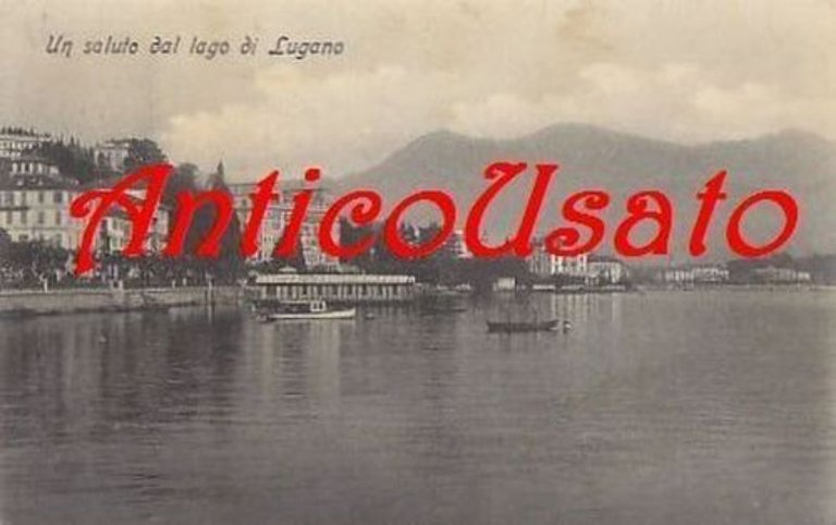 CARTOLINA UN SALUTO DAL LAGO DI LUGANO viaggiata 1911 usata ORIGINALE d'epoca