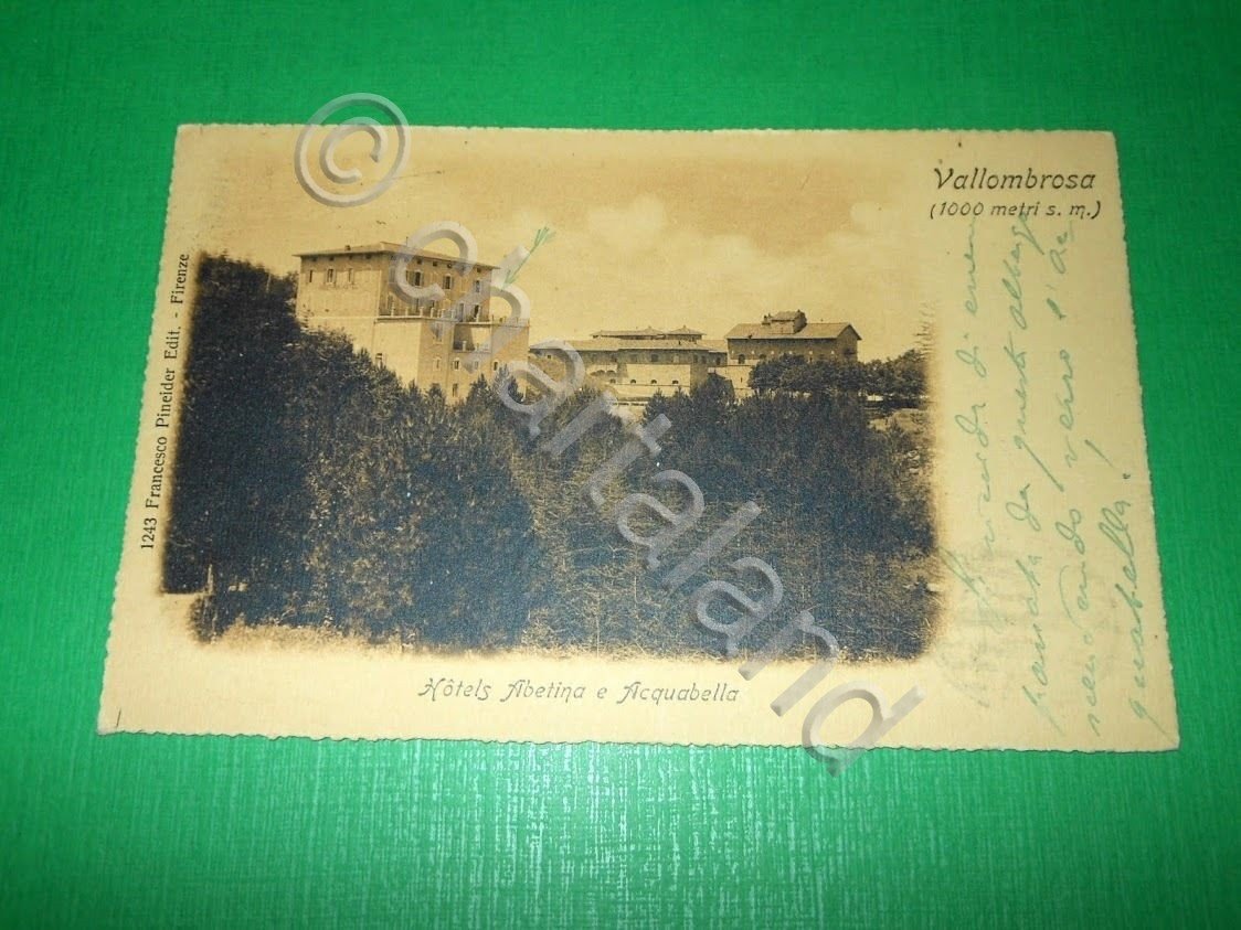 " *** Cartolina Vallombrosa - Hotels Albertina e Acquabella. La cartolina è viaggiata. Datata 1921. Formato piccolo. Per appassionati, studiosi e collezionisti