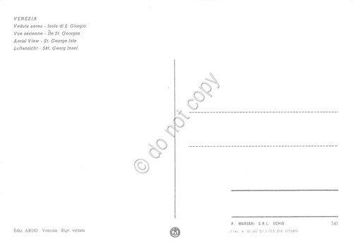 Cartolina Venezia Isola di san Giorgio Veduta aerea anni '60