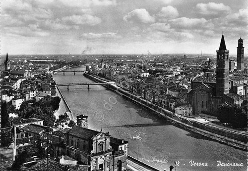 Cartolina Verona panorama dall'alto case fiume ponti 1956