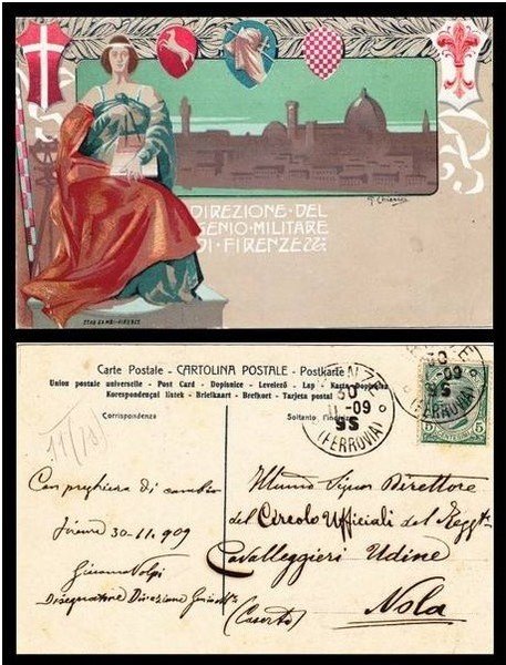 Note Bibliografiche cartolina illustrata viaggiate della Direzione del Genio Militare di Firenze; buon es.