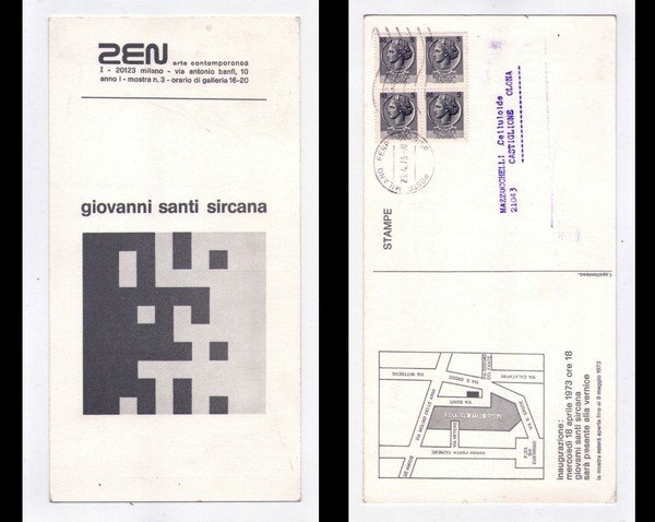Invito GIOVANNI SANTI SIRCANA. ZEN Arte Contemporanea - Milano. 1973