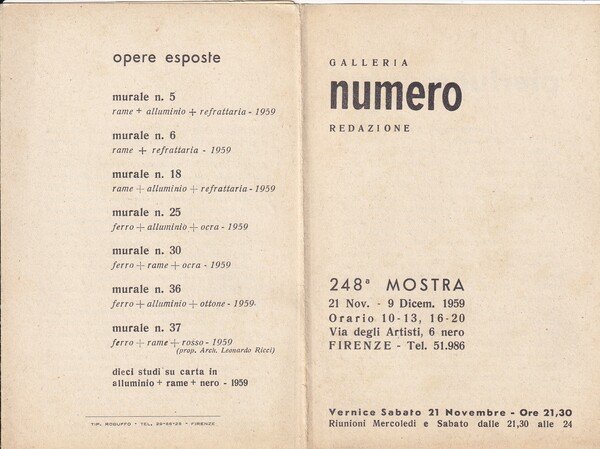 Invito mostra 248 PIERLUCA. Galleria NUMERO (Firenze). 1959 + Cartolina