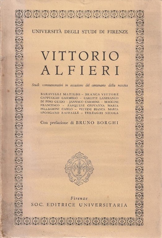 1^ edizione autografata! Vittorio Alfieri. Studi commemorativi in occasione del centenario della nascita