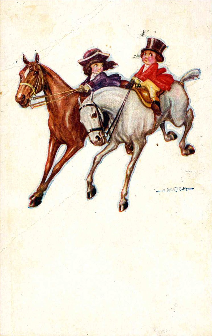 - n°2 cartoline con bambini a cavallo, viaggiate (20/01/1921 e 11/03/1921)