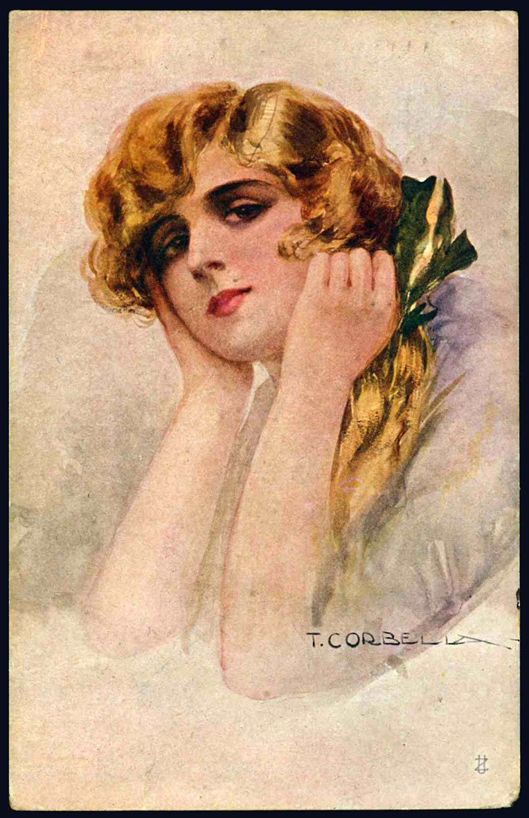 - 5 cartoline a colori (mm 90x140) con figure femminili (quattro viaggiate, una solo scritta, 1921-1926):