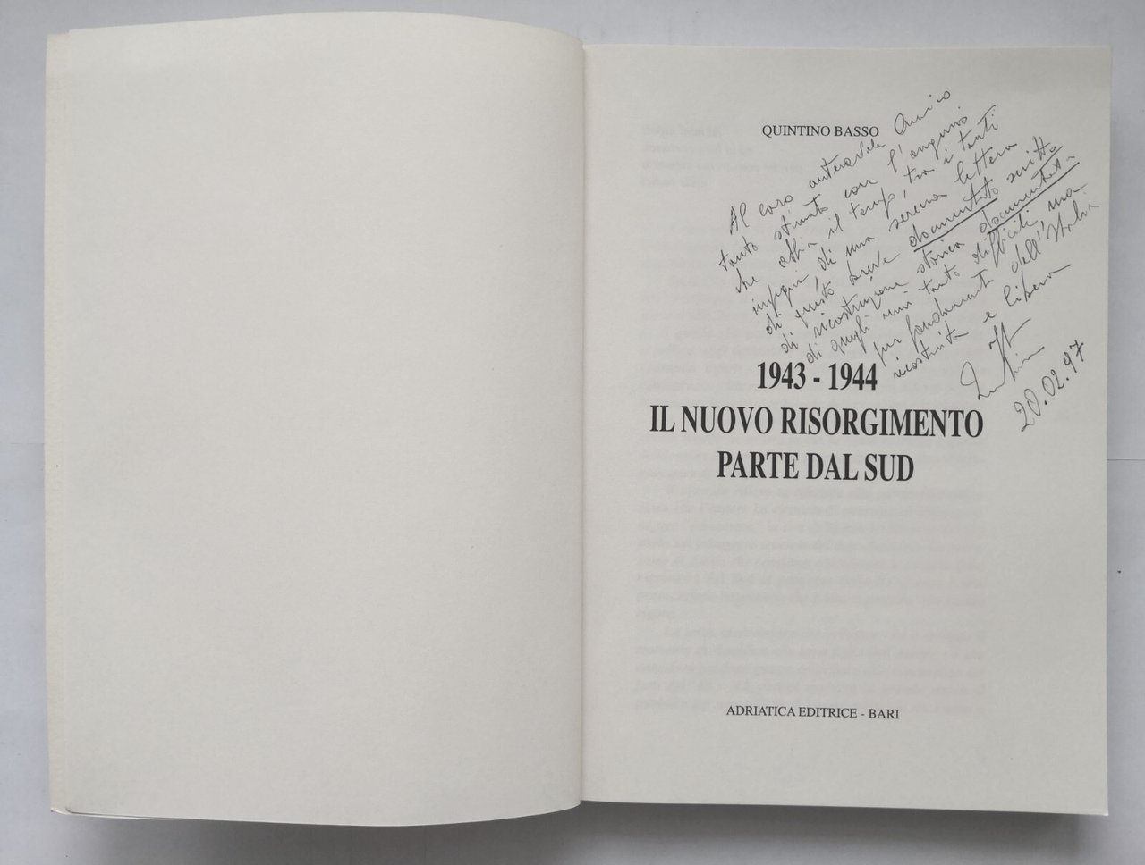 1943 1944 IL NUOVO RISORGIMENTO PARTE DAL SUD di Quintino Basso 1996 Libro