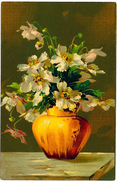N°2 cartoline raffiguranti un vaso di fiori, a colori (mm 139x90), viaggiate (02/03/1921).