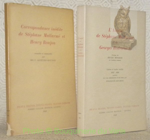 2 Titres. 1. Correspondance inédite de Stéphane Mallarmé et Henry Roujon. Recueillie et commentée par Mme C. Lefèbvre-Roujon. Collection Beaux textes, textes rares, textes inédits. 2. L’amitié de Stéphane Mallarmé et de Georges Rodenbach. Préface de Henri Mondor. Lettres et textes inédits, 1887 - 1898, publiés avec une introduction et des notes par François Ruchon. Collection Beaux textes, textes rares, textes inédits.
