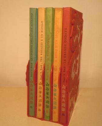 Prima edizione; 5 volumi inseriti in un originale astuccio in plastica rossa con figura di drago in rilievo ai lati; leg. ed. piena tela con illustrazione al piatto, titolo al piatto e al dorso anche con ideogrammi. Numerose illustrazioni b/n di Raffaele Paparella e William Arthur Smith, nel testo e a piena pagina. In 8°, pp. 75 ogni volume. Solo qualche macchiolina ai margini di alcune pagine al quarto titolo a cui manca l'ultima carta di guardia. Per altro ottime condizioni.