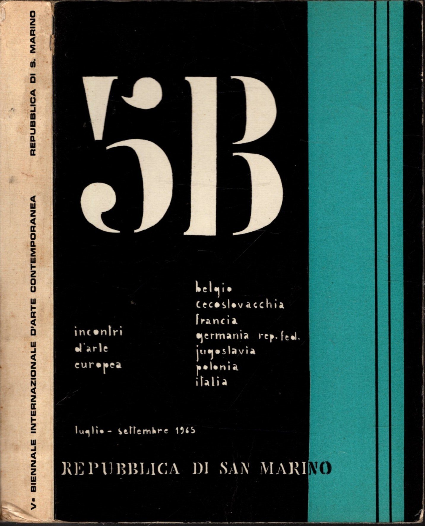 V Biennale Internazionale d'Arte Contemporanea della Repubblica di S. Marino promossa e patrocinata dall'Ente Governativo per il Turismo, Sport e Spettacolo. Incontri della giovane pittura europea rappresentata in questa edizione: Belgio, Cecoslovacchia, Francia, Italia, Iugoslavia, Polonia