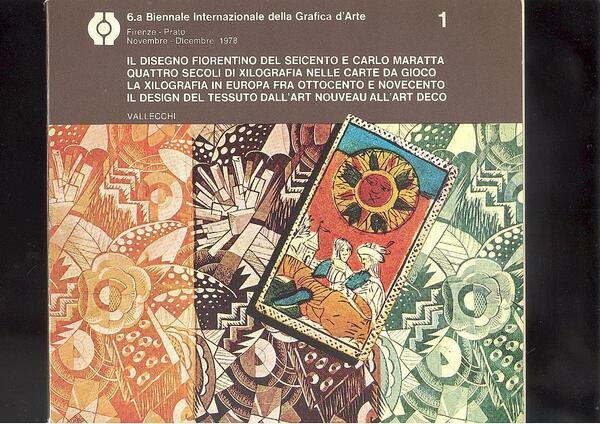 IN 8° CARRE ( cm.23,5 X 22 ), pp.168. COPERTINA EDITORIALE PATINATA ILLUSTRATA CON TITOLO. CATALOGO DELLA 6° BIENNALE INTERNAZIONALE DELLA GRAFICA ANTICA, TENUTASI A FIRENZE - PRATO, NOVEMBRE - DICEMBRE 1978 CHE COMPRENDE: IL DISEGNO FIORENTINO DEL SEICENTO E CARLO MARATTA. QUATTRO SECOLI DI XILOGRAFIA NELLE CARTE DA GIOCO. LA XILOGRAFIA IN EUROPA FRA OTTOCENTO E NOVECENTO. IL DESIGN DEL TESSUTO DALL'ART NOUVEAU ALL'ART DECO. VOLUME RICCAMENTE ILLUSTRATO<BR>in b/n/col. ANCHE a pp. OTTIMA CONSERVAZIONE GENERALE. ID, 7024