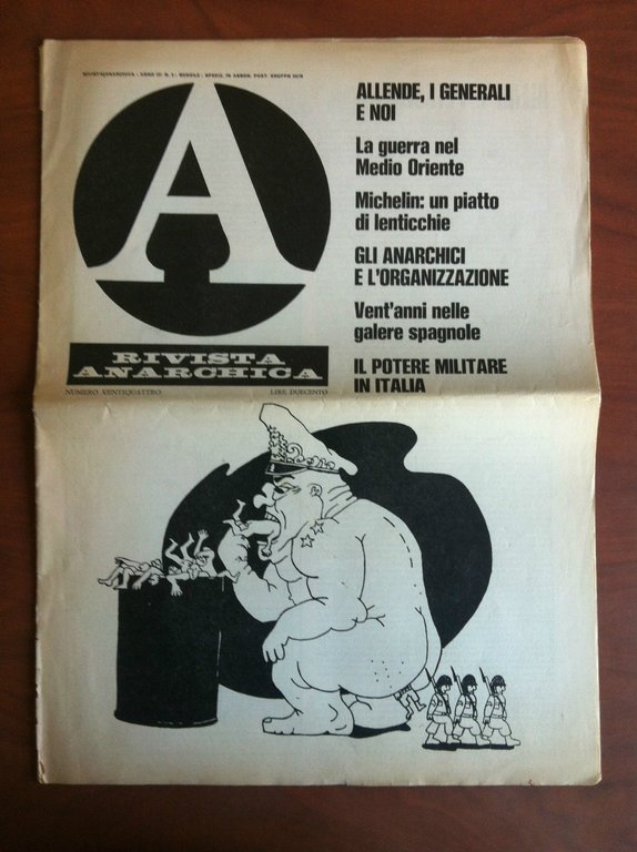 A - RIVISTA ANARCHICAAnno III N^ 8 - Ottobre 1973 Direttore Paolo Finzi164 paginein buone condizioni salvo piccoli strappi ai bordi e dorso (70 g) E19732